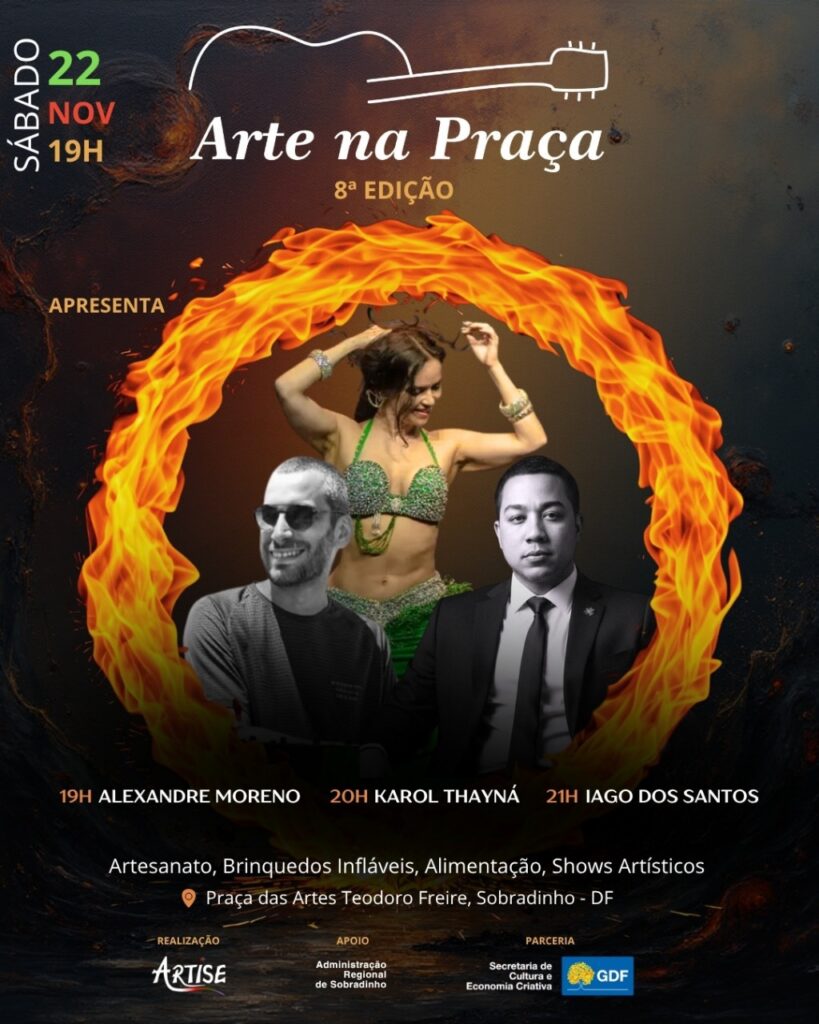 A oitava edição do Projeto Arte na Praça chega ao seu novo evento de 2025. Neste sábado (22), a cidade serrana terá mais uma noite vibrante com música e dança na Praça das Artes Teodoro Freire, na Quadra 8 de Sobradinho.
