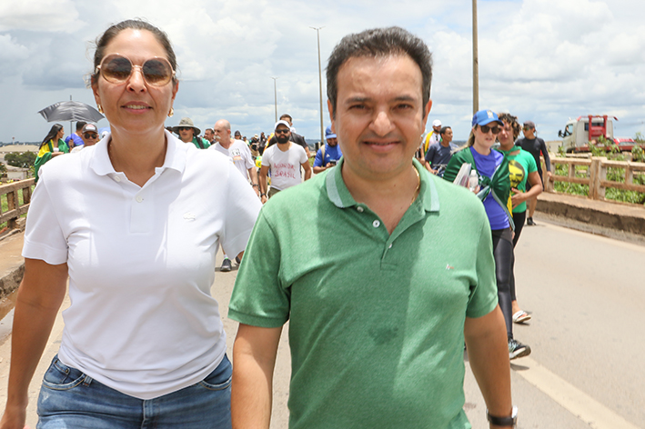 O secretário do Entorno-DF, Pábio Mossoró e a esposa Josélia foram apoiar o deputado na avenida