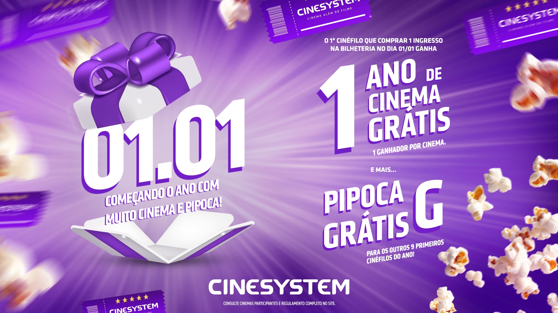 As estreias previstas para 2026 estão deixando muitos cinéfilos ansiosos! De “Toy Story 5” a “Jogos Vorazes: Amanhecer na Colheita”, passando por “O Diabo Veste Prada 2” e “Vingadores: Doomsday”, são muitos títulos que prometem fazer a cabeça de pessoas de todas as idades e a Cinesystem, que figura entre as maiores exibidoras do país, decidiu preparar uma surpresa que vai deixar o próximo ano ainda mais interessante! O primeiro cliente de cada cinema a realizar a compra de pelo menos 1 ingresso presencialmente no caixa, no dia 01 de janeiro de 2026, vai ganhar um ano de cinema grátis! E não para por aí. Os 9 clientes subsequentes, por cinema, que efetuarem a compra vão poder aproveitar um ano de Pipoca Grande totalmente na faixa.