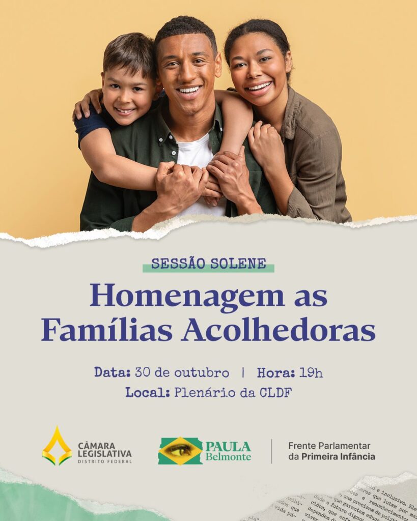 Brasília, 29 de outubro de 2025 – A Câmara Legislativa do Distrito Federal realiza, no dia 30 de outubro, às 19h, uma Sessão Solene em Homenagem às Famílias Acolhedoras, no Plenário da CLDF. A iniciativa é da deputada Paula Belmonte, por meio da Frente Parlamentar da Primeira Infância, e tem como objetivo valorizar e reconhecer o papel essencial das famílias que acolhem temporariamente crianças e adolescentes em situação de vulnerabilidade, garantindo-lhes amor, cuidado e proteção enquanto aguardam o retorno à família de origem ou a adoção.