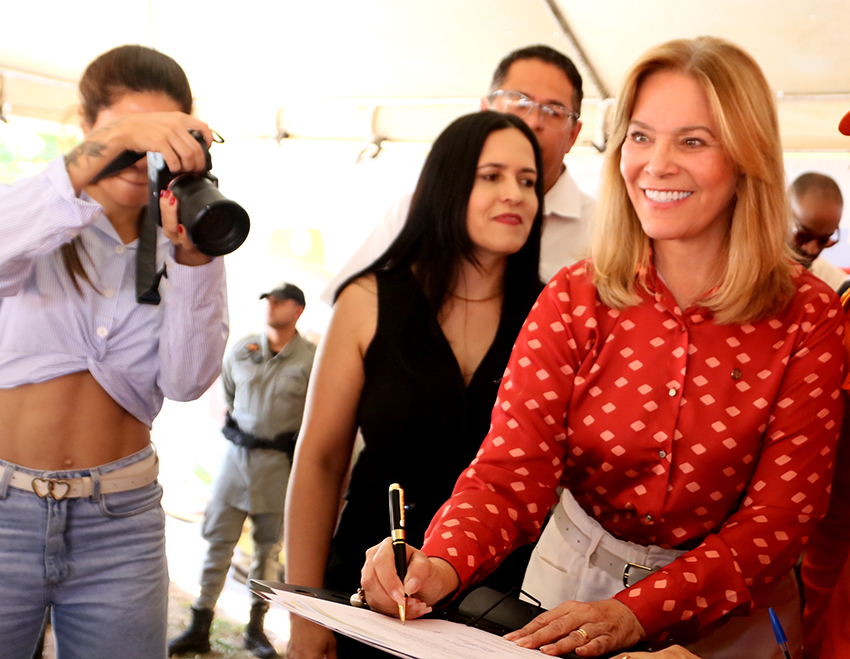 A deputada Lêda Borges, durante assinatura para início da obra do Corpo de Bombeiros Militar de Goiás na Cidade Ocidental: expansão de atuação para várias cidade do Estado