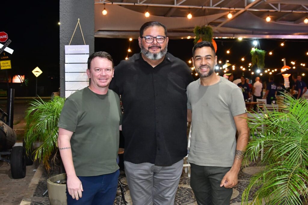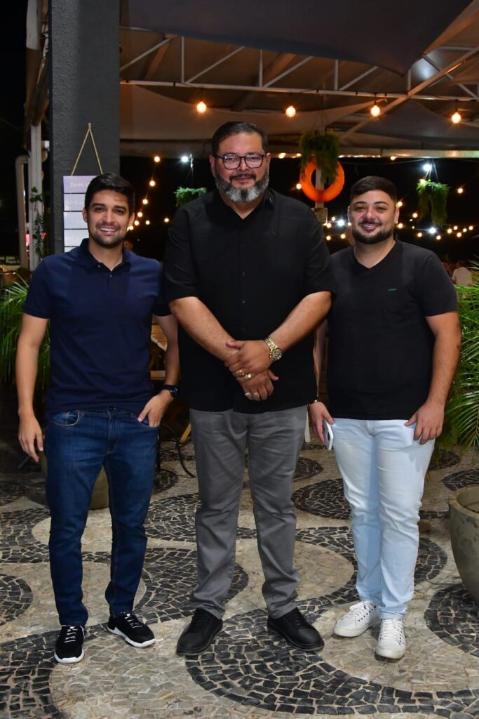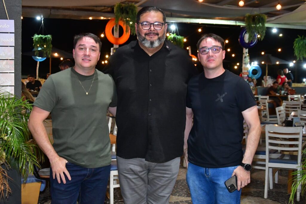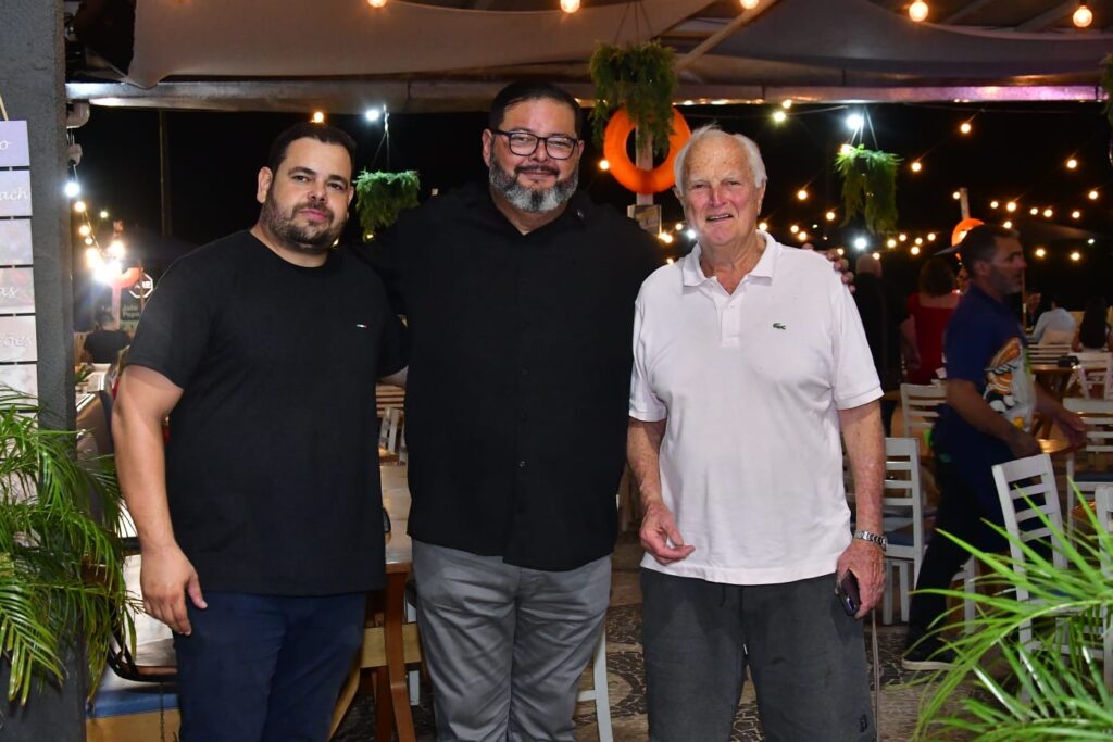 O aniversariante com o proprietário do Barea Beach Naldo Vieira e o Dr. Ronald Starling Soares