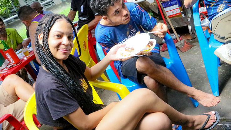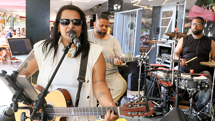 Gisele Nunes, vocalista da Banda Batucada dos Raparigueiros: animação na festa e primeira chamada para o carnaval 2026