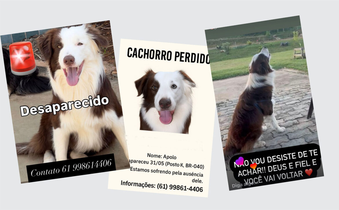 “Vim aqui desesperada contar a minha história!! O meu cachorro Apolo da raça Border Collie fugiu da fazenda em Cristalina, em Goiás. Ele desapareceu no dia 31/05, bem no dia do meu aniversário. Estou desesperada, com problemas de saúde e peço ajuda a todos que puderem ajudar, a encontrar meu cãozinho”, disse em a jovem em texto enviado no início da noite deste sábado, dia 28 ao Blog do Amarildo.