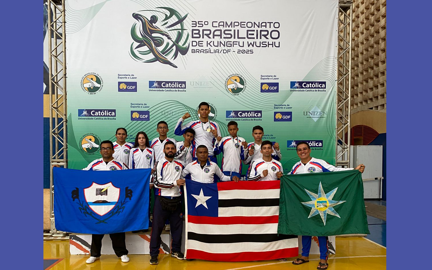 A participação da delegação do Estado do Maranhão no Campeonato Brasileiro de Kung-Fu, em evento realizado entre os dias 11, 12 e 13 deste mês de dezembro na Universidade Católica, em Taguatinga, no Distrito Federal foi um sucesso. Os competidores Riquelve dos Santos Carvalho, Kermison Feitosa Rodrigues, Elias Manuel dos Santos Araújo e João Pedro da Silva Araújo que integram a equipe comandada pelo experiente treinador e professor Raimundo Carvalho Bezerra, o Mundô, referência no Kung-Fu maranhense e responsável pela formação de diversos talentos no município de São João dos Patos se destacaram na competição, com seis medalhas conquistadas.