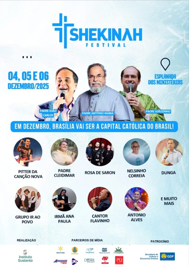 O Distrito Federal será palco de um dos maiores encontros de arte sacra e música católica do Brasil. Entre os dias 04 a 06 de dezembro de 2025, a Esplanada dos Ministérios recebe o Festival Shekinah, com entrada gratuita e uma programação intensa marcada por música, espiritualidade, testemunhos emocionantes e solidariedade.