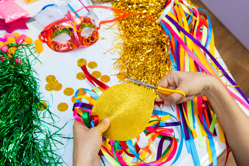 Nesta oficina, crianças e adultos criam suas próprias fantasias com a nossa equipe. Vamos produzir máscaras, tiaras, ombreiras, capas e outros adereços bem coloridos e brilhantes para entrar no clima da folia. No fim, o grupo participa de um desfile com as peças que fez, celebrando a criatividade e a brincadeira em conjunto.