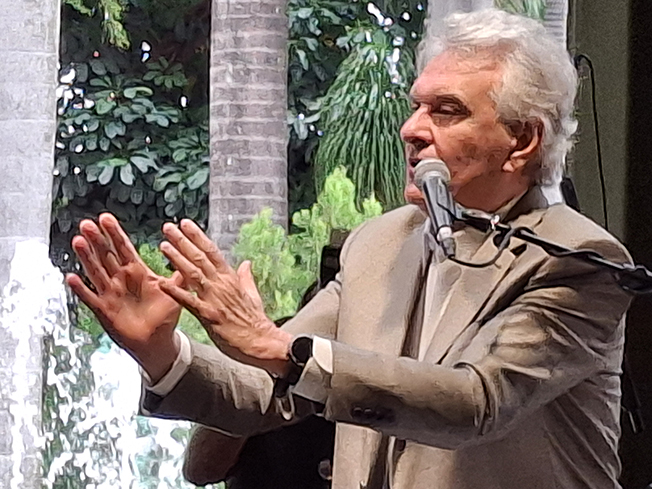 Apesar de dizer que não falaria muito, o governador Ronaldo Caiado se empolgou ao microfone e fez um longo discurso, iniciando pelos agradecimentos aos presentes, e em seguida, pediu para que os comunicadores mostrem o que seu governo fez pelo povo goiano.