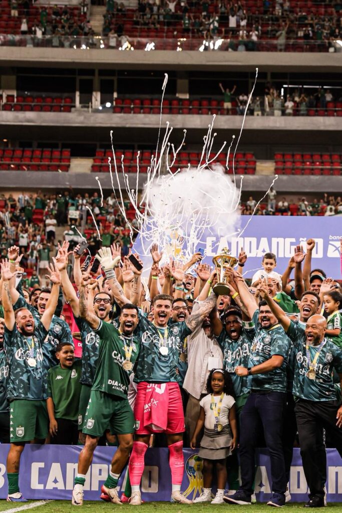 O goleiro Renan ao centro, com os companheiros na comemoração do bicampeonato do Candangão