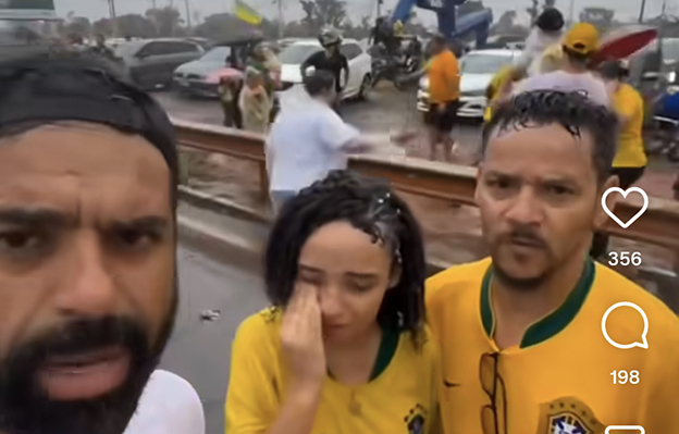 O ‘apresentador’ fala da necessidade do aumento da segurança, e se mostrando simpatizando da ‘causa’ do deputado Nikolas Ferreira diz que a culpa é da ‘petezada’ infiltrada.