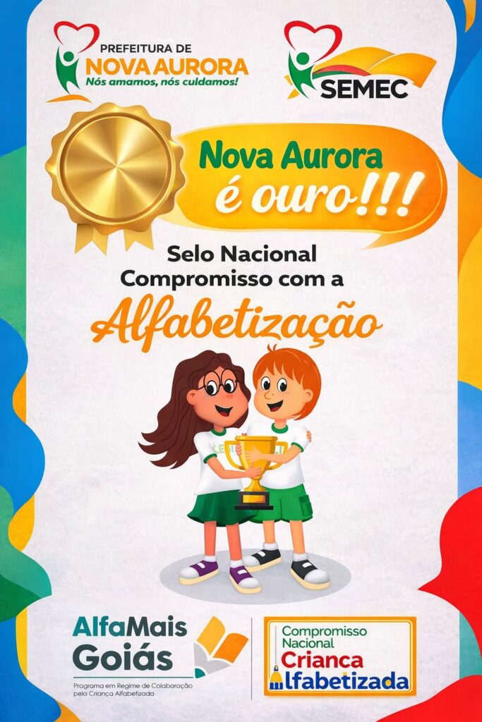 O reconhecimento, concedido pelo Ministério da Educação (MEC), por meio do Portal do SIMEC, com inscrições realizadas entre 17 de novembro e 12 de dezembro, comprova que Nova Aurora cumpriu com excelência todas as metas estabelecidas para garantir a alfabetização das crianças na idade certa. A premiação é resultado do trabalho em regime de colaboração entre o Governo Federal, o Estado de Goiás e os municípios, com destaque para o fortalecimento das políticas públicas educacionais.