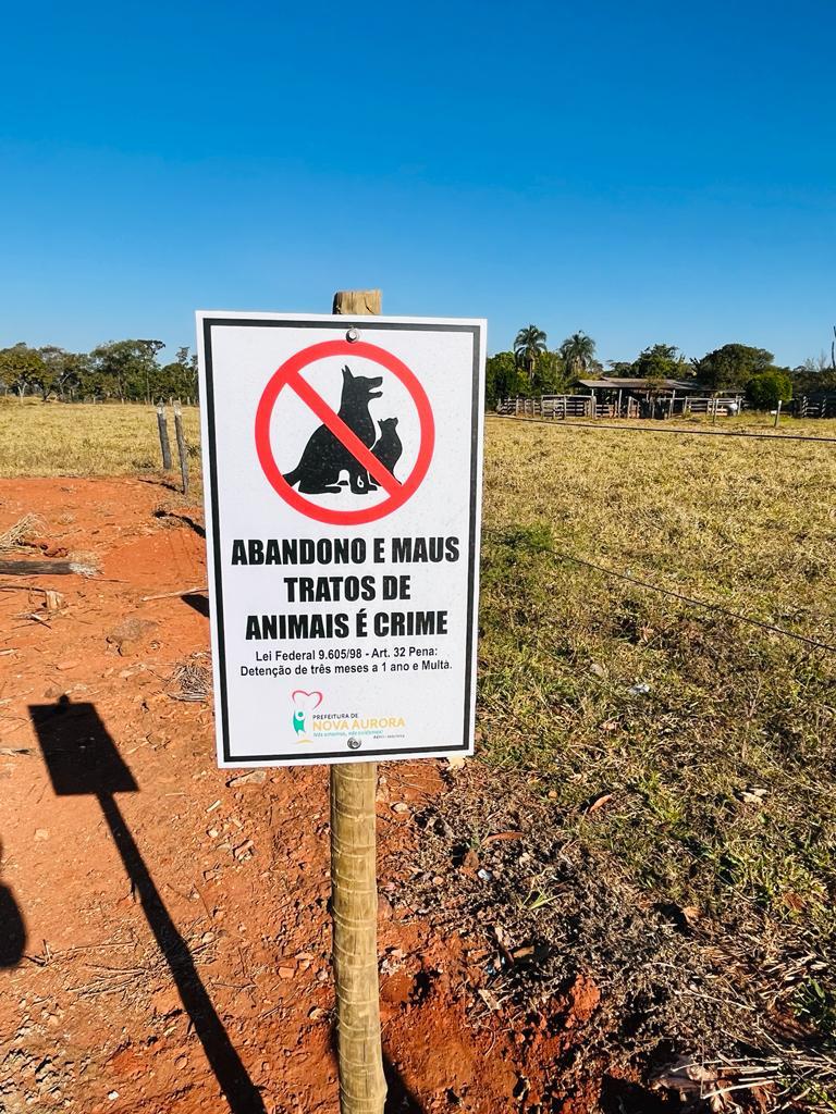 Placas instaladas pelas: prefeitura alerta sobre crime e pede apoio para evitar o abandono de animais