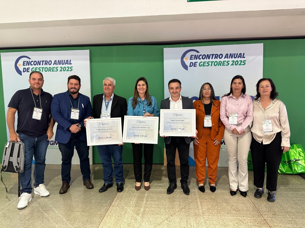 Pábio Mossoró e prefeito de Valparaíso são homenageados no Encontro Estadual de Gestores em Goiânia