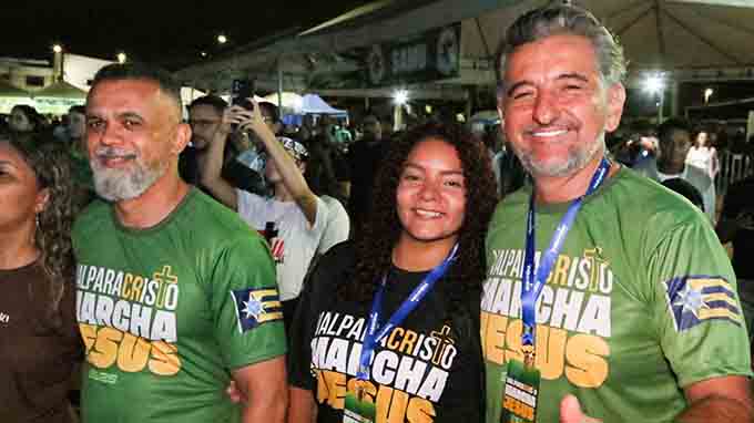 Acompanhado da primeira dama Luciana Mendes durante o evento, ela também deu seu recado: “Estou muito feliz com o sucesso dessa primeira Marcha para Jesus, e acredito que esse evento é um marco na história do segmento religioso na nossa cidade, todos estão de parabéns”, disse Luciana.