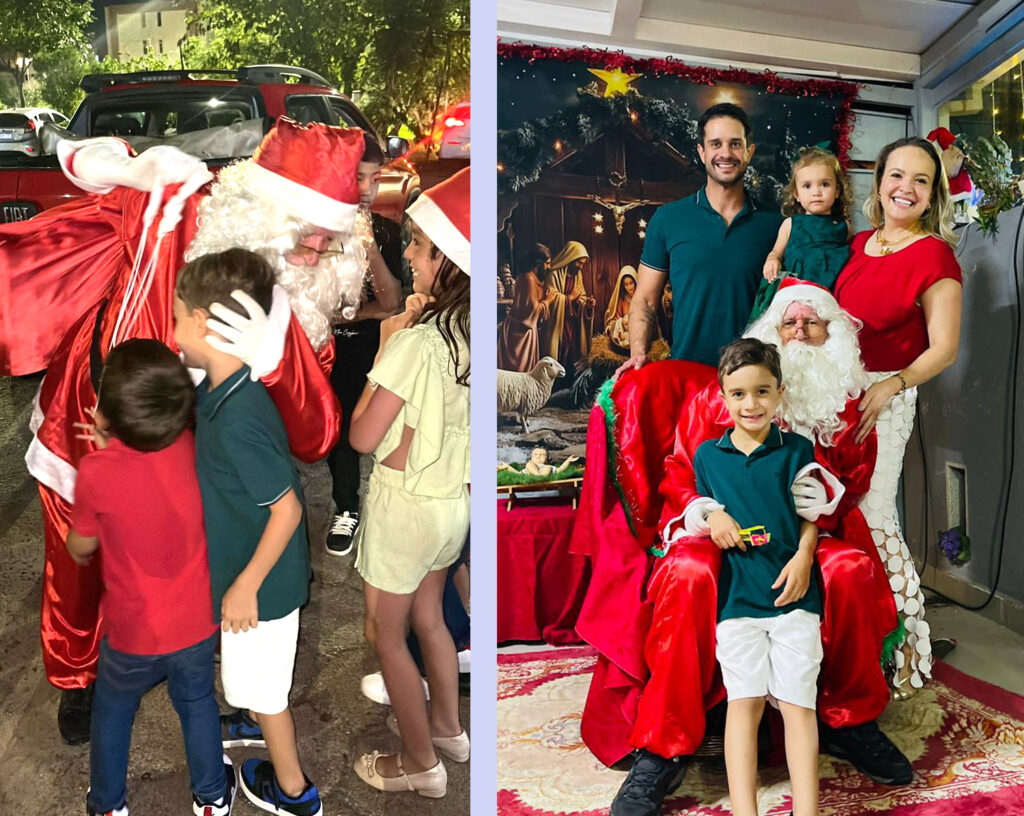 Pequito vestido de Papai Noel: presentes para as crianças da quadra no Natal