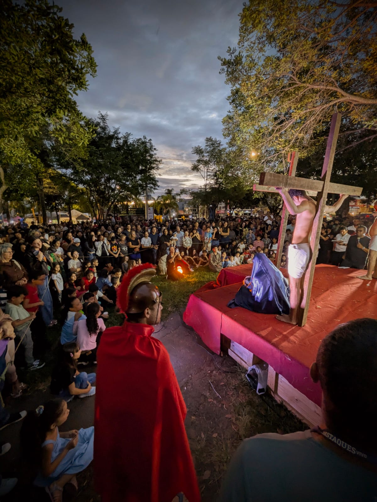 Na tarde desta Sexta-Feira Santa (3/4) foi realizado a encenação da Paixão de Cristo, cerca de 2 mil pessoas participaram da Via Sacra realizada no Riacho Fundo I, um dos momentos mais marcantes de fé e devoção da comunidad independente da religião, católicos e evangélicos participaram desse ato de amor e fé.