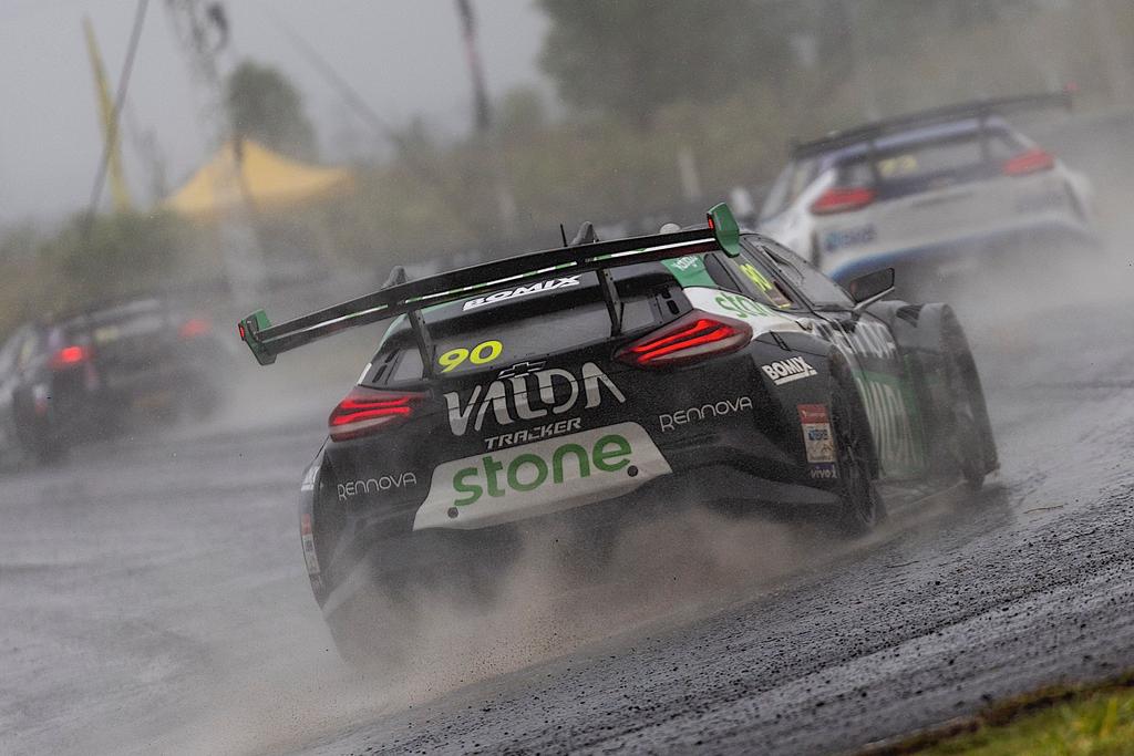 A disputa no pelotão foi intensa. O tricampeão duelou com adversários, enfrentando momentos de aquaplanagem e perda de aderência, mas conseguiu levar o carro ao fim em bom ritmo.