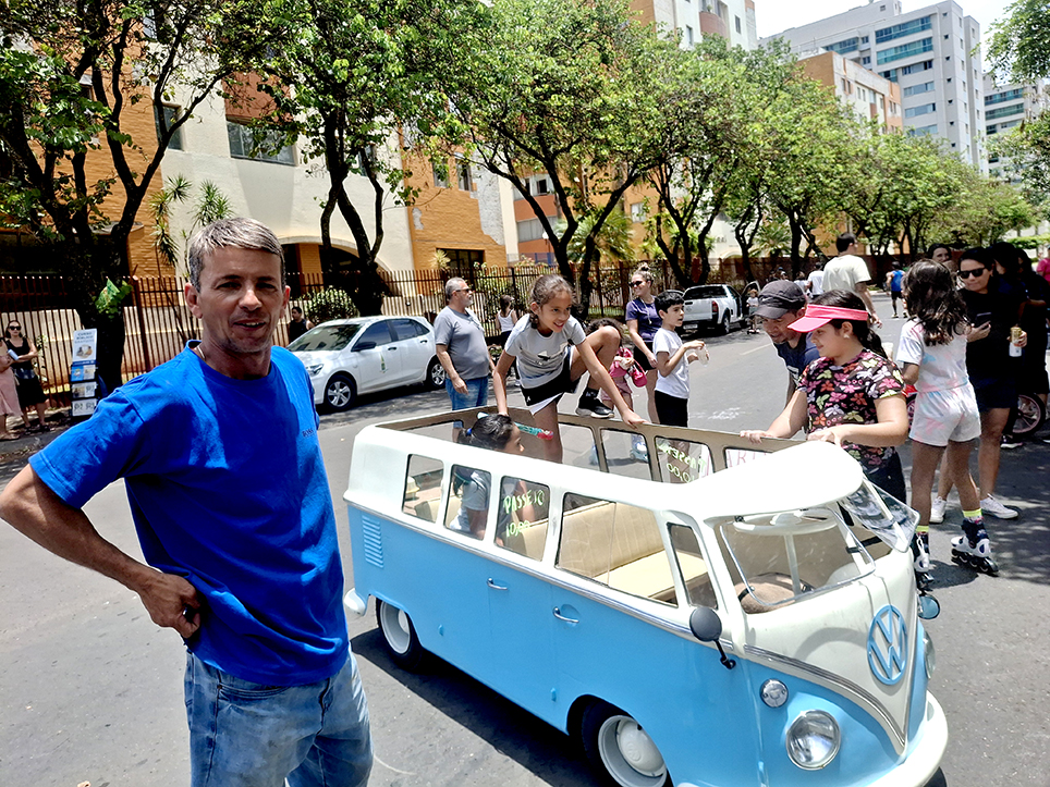 A última Rua do Lazer, evento realizado na Avenida Central do Guará II, no último dia 26 de outubro, além das atrações tradicionais, teve um incentivo a mais para a criançada e adultos: os passeios com os chamados minicarros, do empresário Alessandro da Silva Santos, o Pardal. Os carrinhos, dois modelos exclusivos, um em alusão ao lendário Fiat 147 e outro, um Volkswagen Kombi, azul, foram o destaque do dia.