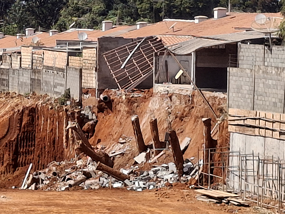 Desabamento de muro em condomínio próximo à Etapa D: falta de planejamento pode estar por trás de muitos problemas nas construções da cidade e falta de equipamentos públicos preocupa