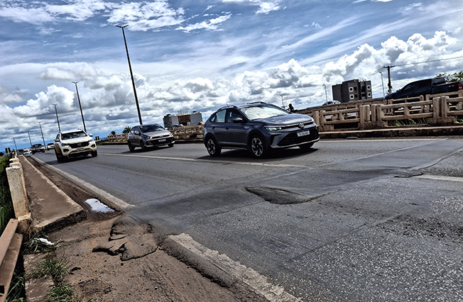 - Equipamento, que já é antigo e fica na altura do Atacadão Costa, passou em 2025 por manutenção feita pelo DENIT, mas voltou a apresentar ‘afundamento’ no asfalto desde dezembro do mesmo ano