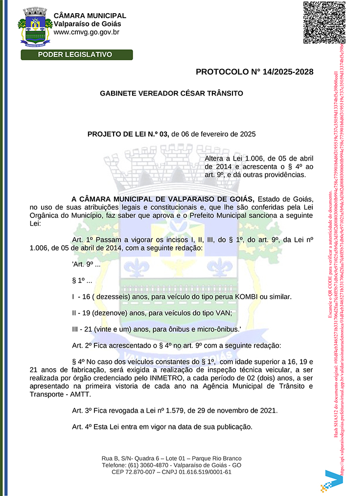 A premissa básica de um vereador é criar novos projetos de leis que no futuro possam virar leis no município e atender melhor à comunidade, além de estar atendo às demandas locais. E essas premissas estão sendo seguidas à risca pelo vereador de primeiro mandato em Valparaíso de Goiás, Cézar do Trânsito (PP). Com um ano de gestão completado na cidade, o parlamentar não é daqueles políticos que apresentam projetos de leis todas as semanas para fazer números, mas sim, os apresentam dentro daquilo que acha que pode ajudar a comunidade local.